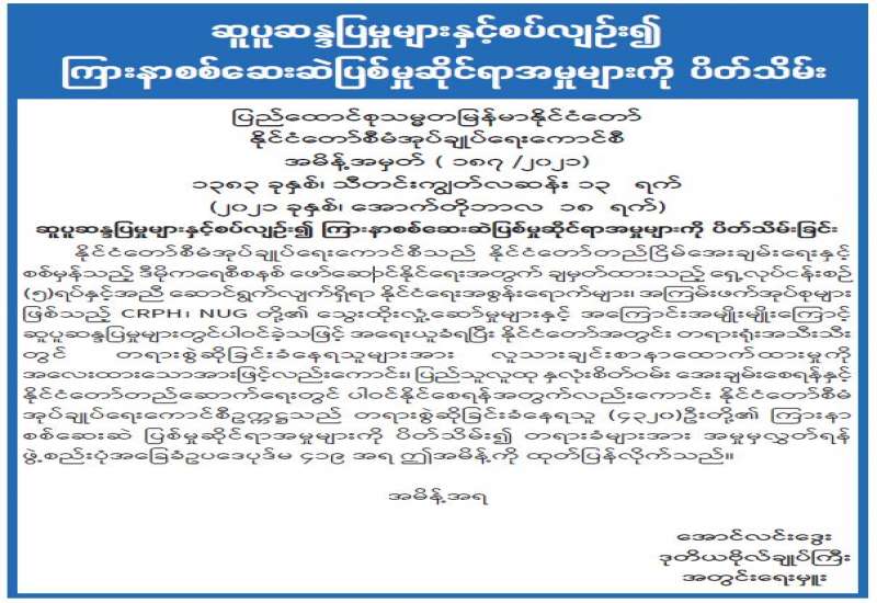ဆူပူဆန္ဒပြမှုများနှင့်စပ်လျဉ်း၍ ကြားနာစစ်ဆေးဆဲပြစ်မှုဆိုင်ရာအမှုများကို ပိတ်သိမ်း