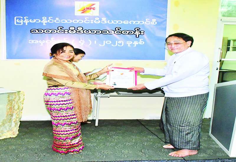 မြန်မာနိုင်ငံသတင်းမီဒီယာကောင်စီ မီဒီယာဖွံ့ဖြိုးရေးကော်မတီက စီစဉ်ဖွင့်လှစ်သည့် မီဒီယာသင်တန်းအမှတ်စဉ်(၄) သင်တန်းဆင်းပွဲကို ယနေ့ညနေပိုင်းတွင် ရန်ကုန်မြို့ဗိုလ်တထောင်မြို့နယ် ကုန်သည်လမ်းရှိ မြန်မာ နိုင်ငံ သတင်းမီဒီယာကောင်စီရုံး သင်တန်းခန်းမ၌ ကျင်းပသည်။