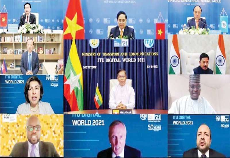 အပြည်ပြည်ဆိုင်ရာဆက်သွယ်ရေးအဖွဲ့ချုပ် (ITU) နှင့် ဗီယက်နမ်နိုင်ငံ ပြန်ကြားရေးနှင့် ဆက်သွယ်ရေးဝန်ကြီးဌာနတို့က ကြီးမှူး၍ စက်တင်ဘာ ၁ ရက်မှ နိုဝင်ဘာ ၃၀ ရက်အထိ ဗီဒီယိုကွန်ဖရင့်စနစ်ဖြင့် ကျင်းပပြုလုပ်သော “ITU Digital World 2021” အစီအစဉ်များအတွင်း ယနေ့တွင် ကျင်းပပြုလုပ်သည့် ဝန်ကြီးအဆင့် စားပွဲဝိုင်းဆွေးနွေးပွဲသို့ ပို့ဆောင်ရေးနှင့်ဆက်သွယ်ရေး ဝန်ကြီးဌာန ပြည်ထောင်စုဝန်ကြီး ဗိုလ်ချုပ်ကြီး တင်အောင်စန်း ပါဝင်တက်ရောက် ဆွေးနွေးသည်။