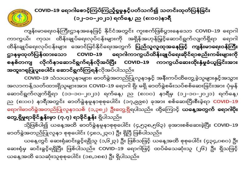 COVID-19 ရောဂါစောင့်ကြပ်ကြည့်ရှုမှုနှင့်ပတ်သက်၍ သတင်းထုတ်ပြန်ခြင်း (၁၂-၁၀-၂၀၂၁) ရက်နေ့၊ ည (၈:၀၀)နာရီ
