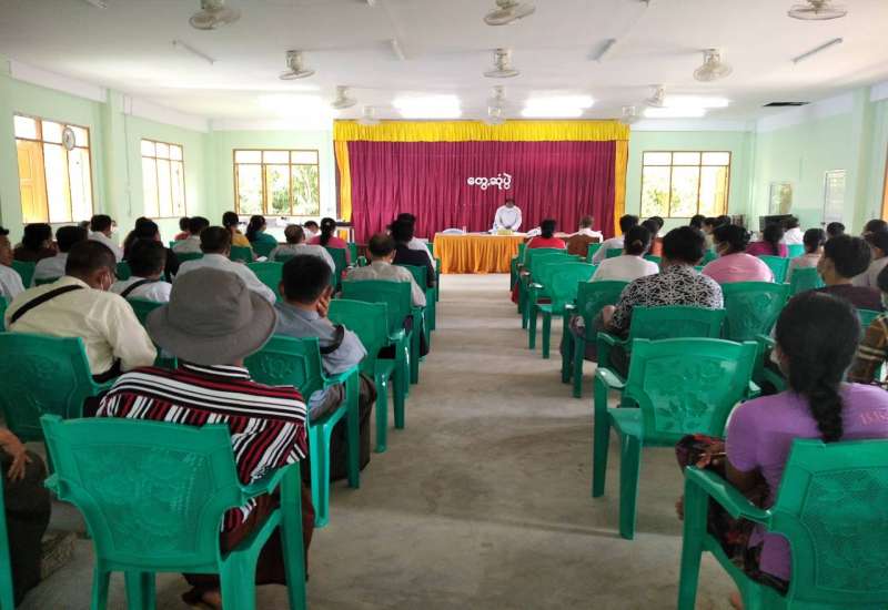 ပဲခူးတိုင်းဒေသကြီး၊ ပဲခူးခရိုင်၊ ကဝမြို့နယ် ကိုဗစ်-၁၉ ရောဂါ ထိန်းချုပ်ရေးနှင့် အရေးပေါ် တုံ့ပြန်ရေးကော်မတီ၏ အသက် ၁၂ နှစ်နှင့်အထက် အလယ်တန်းနှင့် အထက်တန်းကျောင်းသား /ကျောင်းသူများအား ကိုဗစ်- ၁၉ရောဂါကာကွယ်ဆေးထိုးနှံနိုင်ရေး အစည်းအဝေးကို မြို့နယ်အထွေထွေအုပ်ချုပ်ရေးဦးစီးဌာနရုံး အစည်းအဝေးခန်းမ၌
