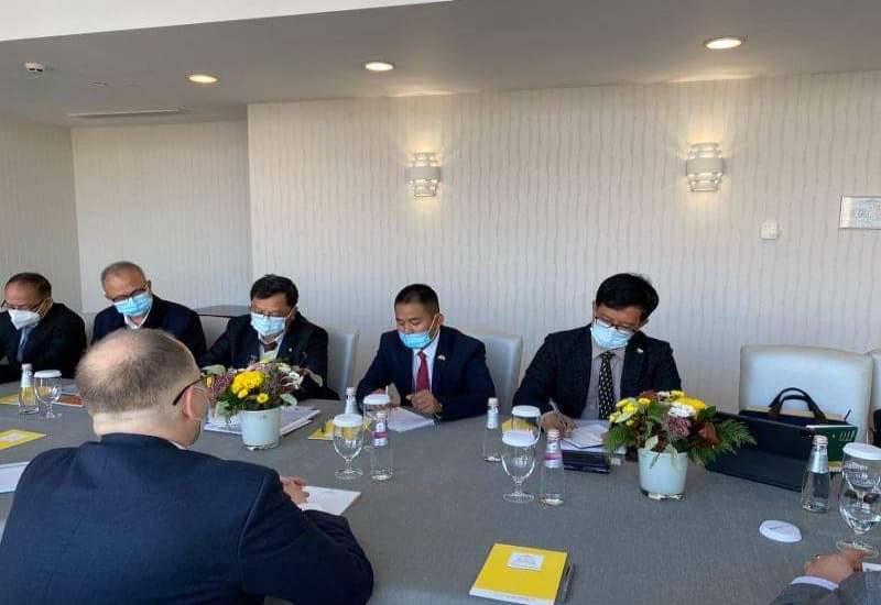 ရုရှားဖက်ဒရေးရှင်းနိုင်ငံ မော်စကိုမြို့၌ ကျင်းပပြုလုပ်သော Russian Energy Week International Forum (REW 2021) သို့ တက်ရောက်ရန် မော်စကိုမြို့၌ ရောက်ရှိနေသည့် လျှပ်စစ်နှင့်စွမ်းအင်ဝန်ကြီးဌာန ပြည်ထောင်စုဝန်ကြီး ဦးအောင်သန်းဦး နှင့်အဖွဲ့သည် အောက်တိုဘာ ၁၁ ရက်တွင် ORGRES ကုမ္ပဏီနှင့် ရုရှားကုန်သည်ကြီးများအသင်းတို့မှ တာဝန်ရှိသူများနှင့် တွေ့ဆုံ၍ နှစ်နိုင်ငံရင်းနှီးမြှုပ်နှံမှုဆိုင်ရာ ကိစ္စရပ်များကို ဆွေးနွေးခဲ့သည်။