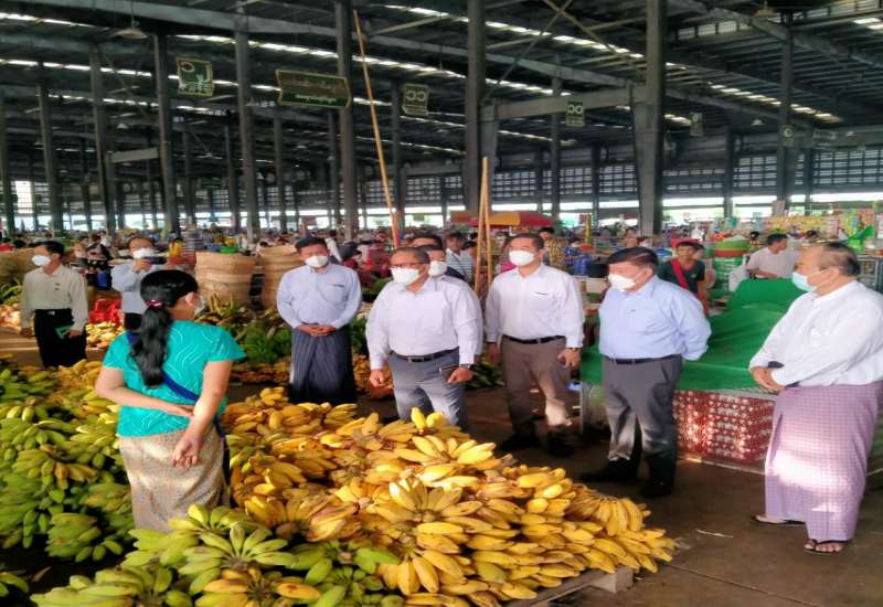 စိုက်ပျိုးရေး၊မွေးမြူရေးနှင့်ဆည်မြောင်းဝန်ကြီးဌာန ပြည်ထောင်စုဝန်ကြီးဦးတင်ထွဋ်ဦး သည် ရန်ကုန်တိုင်းဒေသကြီး အစိုးရအဖွဲဝင် စီးပွားရေး ရာဝန်ကြီး ဦးအောင်သန်းဦးနှင့်အတူ ယနေ့ နံနက်ပိုင်းက တညင်းကုန်း သစ်သီးဝလံ၊ ဟင်းသီး ဟင်းရွက်နှင့် ပန်းမန်လက္ကားဈေးသစ် ကြီး၊ ရွှေပိ တောက်ငါးဈေးနှင့် သီရိမင်္ဂလာ ဟင်းသီး ဟင်းရွက်ဈေးများတွင် လက်လီ လက်ကား ရောင်းချ နေမှုကို လှည့်လည်ကြည့်ရှုစစ်ဆေးသည်။
