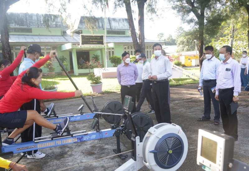 အားကစားနှင့် လူငယ်ရေးရာဝန်ကြီးဌာနပြည်ထောင်စုဝန်ကြီး ဦးမင်းသိန်းဇံသည် ယနေ့ နံနက် ၇နာရီခွဲတွင် ရန်ကုန်တိုင်းဒေသကြီးအစိုးရ အဖွဲ့လူမှုရေးဝန်ကြီး ဦးဌေးအောင်နှင့်အတူ အင်းယားလမ်းရှိ မြန်မာနိုင်ငံလှေလှော်အဖွဲ့ချုပ်သို့ ရောက်ရှိပြီး စားရိပ်သာနှင့် အိပ်ဆောင်များကို လိုက်လံကြည့်ရှု စစ်ဆေး၍ အားကစားသမားများ၏ လေ့ကျင့်နေမှုကို ကြည့်ရှုအားပေးသည်။