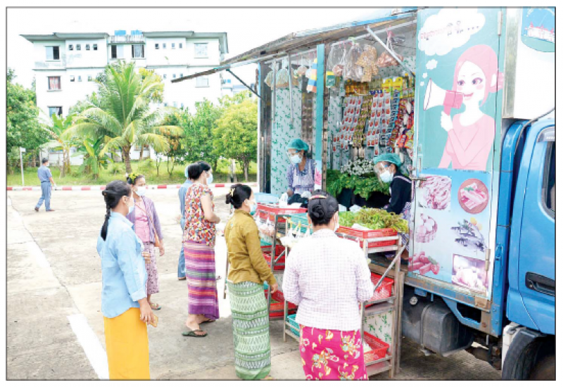 နေပြည်တော်ရှိ ဝန်ထမ်းအိမ်ရာများတွင် နေထိုင်ကြသော ဝန်ထမ်းမိသားစုများနှင့် လူပျို၊ အပျိုဆောင်များတွင် နေထိုင်ကြသည့် ဝန်ထမ်းများ ကိုဗစ်-၁၉ ကူးစက်ရောဂါကာလအတွင်း ဈေးအသီးသီးသို့ သွားရောက်ဝယ်ယူရန်မလိုဘဲ လွယ်ကူအဆင်ပြေချောမွေ့စွာ ဝယ်ယူနိုင်ရန် နေပြည်တော်စည်ပင်သာယာရေး ကော်မတီ၊ ဈေးများဌာနမှ မော်တော်ယာဉ်နှစ်စီးဖြင့် ဝန်ထမ်းအိမ်ရာများအရောက် သန့်ရှင်းလတ်ဆတ်သော ဟင်းသီးဟင်းရွက်၊ ကုန်ခြောက်နှင့် သား/ငါးများကို သင့်တော်သောဈေးနှုန်း၊ အလေးချိန်ခွင် ပြည့်မီမှန်ကန်စွာဖြင့် နေ့စဉ် လှည့်လည်ရောင်းချ ပေးလျက်ရှိသည်။