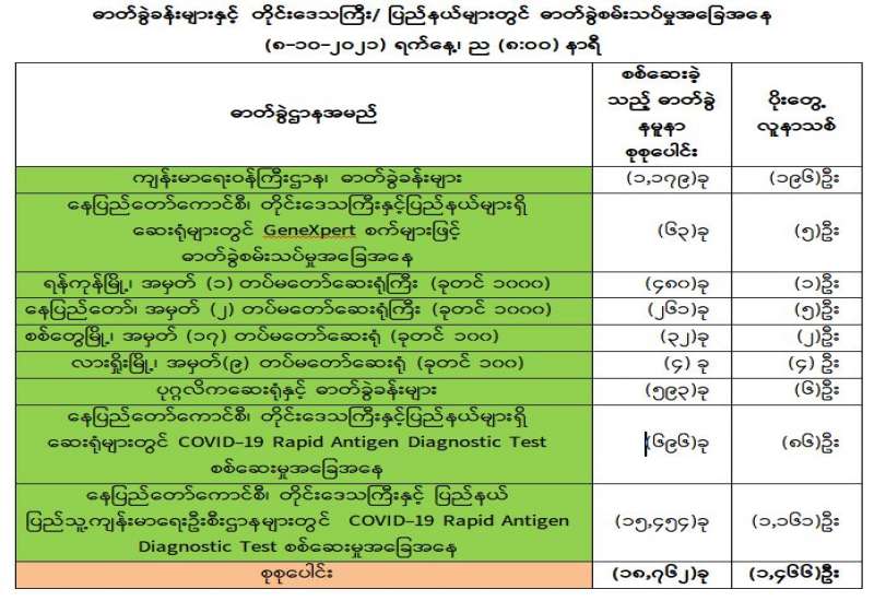 ကျန်းမာရေးဝန်ကြီးဌာနအနေဖြင့် နိုင်ငံအတွင်း ကူးစက်ဖြစ်ပွားနေသော COVID-19 ရောဂါ ကာကွယ်၊ ကုသ၊ ထိန်းချုပ်ရေးလုပ်ငန်းများကို အရှိန်အဟုန်မြှင့်ဆောင် ရွက်လျက်ရှိရာ ရောဂါ ထိန်းချုပ်ရေးလုပ်ငန်းများ အောင်မြင်နိုင်ရေးအတွက် ပြည်သူလူထုအနေဖြင့် ကျန်းမာရေးဝန်ကြီး ဌာနမှ ထုတ်ပြန်ထားသော COVID-19 ရောဂါကာကွယ်ထိန်းချုပ်ရေးဆိုင်ရာ စည်းကမ်းများကို စနစ်တကျ လိုက်နာဆောင်ရွက်ရန်လိုအပ်ပြီး COVID-19 ကာကွယ်ဆေးထိုးနှံမှုခံယူခြင်းအား အထူး ဂရုပြု ပူးပေါင်းဆောင်ရွက်ကြရန်လိုအပ်ပါသည်။