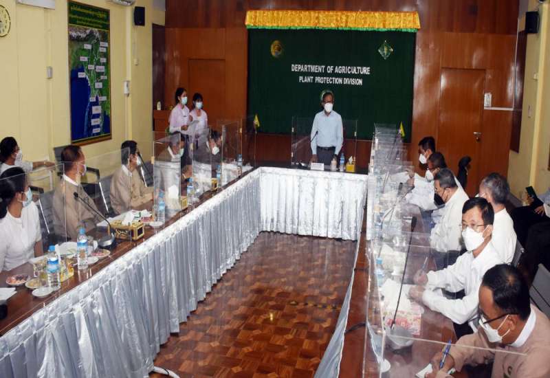 စိုက်ပျိုးရေး၊မွေးမြူရေးနှင့်ဆည်မြောင်းဝန်ကြီးဌာန ပြည်ထောင်စုဝန်ကြီး ဦးတင်ထွဋ်ဦး သည် ယနေ့ နံနက် ၉နာရီခွဲတွင် ရန်ကုန်တိုင်း ဒေသကြီး အင်းစိန်မြို့နယ်ရှိ စိုက်ပျိုးရေးဦးစီးဌာန သီးနှံကာကွယ်ရေး ဌာနခွဲ အစည်းအဝေးခန်းမ၌ ကျင်းပသည့် မြန်မာနိုင်ငံ သွင်းကုန်ထုတ်ကုန် လုပ်ငန်းရှင်များမှ တာဝန်ရှိသူ များနှင့် တွေ့ဆုံဆွေးနွေးပွဲသို့ တက်ရောက် ဆွေးနွေးပြောကြား သည်။
