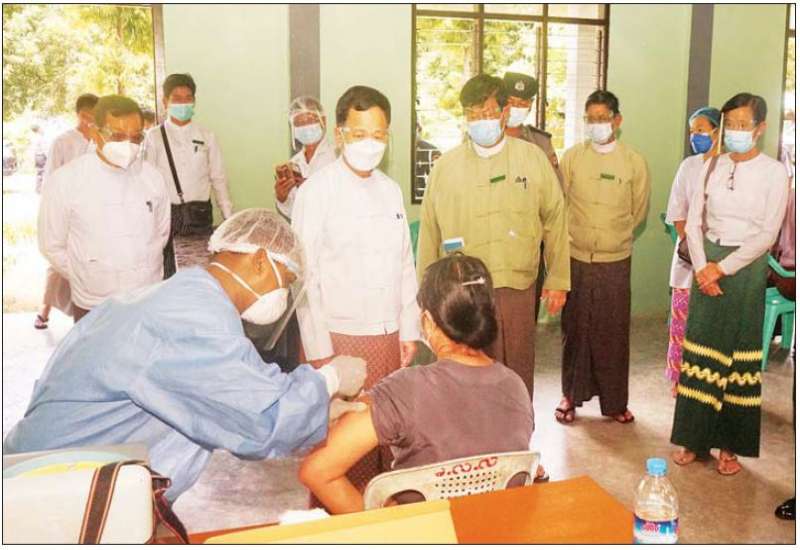 ပြည်ထောင်စုနယ်မြေ နေပြည်တော်တွင် ကိုဗစ်-၁၉ ရောဂါ ကာကွယ်ဆေးများ ထိုးနှံပေးလျက်ရှိရာ နေပြည်တော်ကောင်စီ ဥက္ကဋ္ဌ ဒေါက်တာမောင်မောင်နိုင်၊ ကောင်စီအဖွဲ့ဝင်များနှင့် တာဝန်ရှိသူများ သည် ယနေ့နံနက်ပိုင်းက ပျဉ်းမနားမြို့ အမှတ်(၃) အခြေခံပညာအထက်တန်းကျောင်းရှိ ကာကွယ်ဆေး ထိုးနှံရေး စင်တာတွင် ကာကွယ်ဆေးထိုးနှံပေးနေမှု ကြည့်ရှုအားပေးသည်။