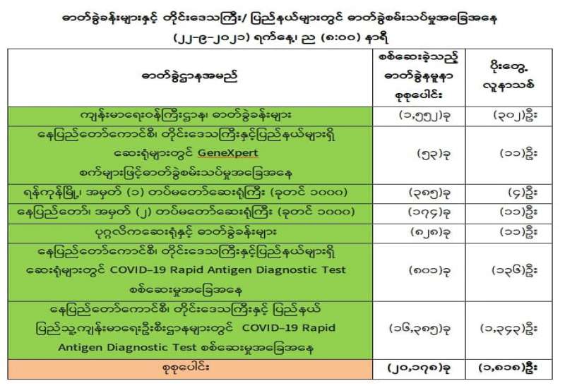 ကျန်းမာရေးဝန်ကြီးဌာနအနေဖြင့် နိုင်ငံအတွင်း ကူးစက်ဖြစ်ပွားနေသော COVID-19 ရောဂါ ကာကွယ်၊ ကုသ၊ ထိန်းချုပ်ရေးလုပ်ငန်းများကို အရှိန်အဟုန်မြှင့်ဆောင်ရွက်လျက်ရှိရာ ရောဂါထိန်းချုပ် ရေးလုပ်ငန်းများ အောင်မြင်နိုင်ရေးအတွက် ပြည်သူလူထုအနေဖြင့် -