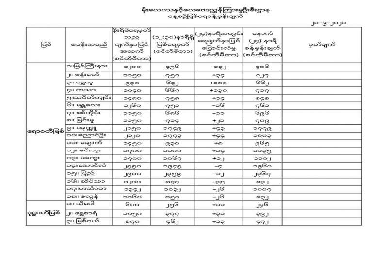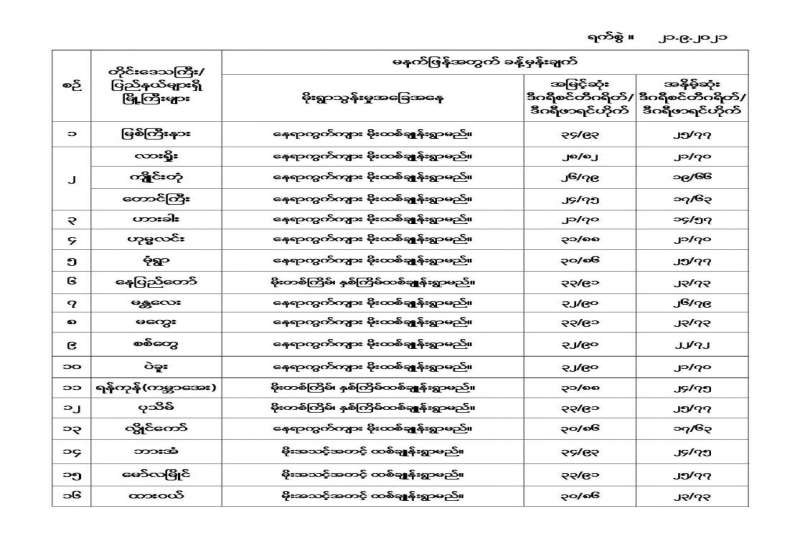 မနက်ဖြန်အတွက် တိုင်းဒေသကြီးနှင့် ပြည်နယ်များရှိ မြို့ကြီးများ၏ အမြင့်ဆုံးအပူချိန်၊ အနိမ့်ဆုံးအပူချိန်နှင့် မိုးလေဝသခန့်မှန်းချက် #မိုးလေဝသနှင့်ဇလဗေဒညွှန်ကြားမှုဦးစီးဌာန