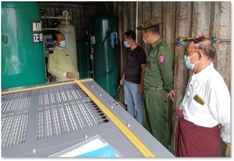 ကိုဗစ်-၁၉ ရောဂါဓာတ်ခွဲအတည်ပြု ပိုးတွေ့လူနာများနှင့် သီးသန့်စောင့် ကြည့်ရမည့်သူများကို ကုသရေးလုပ်ငန်းများ ဆောင်ရွက်ရာတွင် အောက်ဆီဂျင် လိုအပ်ချက်များကို တစ်ဖက်တစ် လမ်းမှ အထောက်အကူပြုစေရန်အတွက် ကျန်းမာ ရေးဝန်ကြီးဌာနမှ Oxygen Plant များကို တိုးမြှင့်တပ်ဆင် လည်ပတ်လျက်ရှိပြီး တပ်မတော်အနေဖြင့်လည်း တိုင်းစစ်ဌာ နချုပ် နယ်မြေအသီးသီးတွင် Oxygen Plant များကို တပ်ဆင်ထုတ်လုပ်ပေးလျက်ရှိသည်။