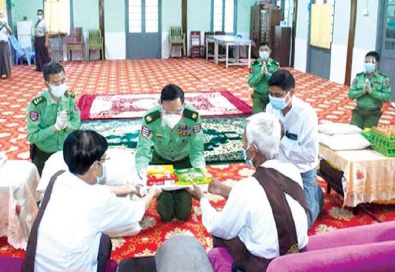 တပ်မတော်(ကြည်း၊ရေ၊လေ) အရာရှိ၊ စစ်သည်၊ အရာထမ်း၊ အမှုထမ်းများနှင့် စေတနာရှင်အလှူရှင်များက ကိုဗစ်-၁၉ ရောဂါ ကြိုတင်ကာကွယ်ရေးလုပ်ငန်းများ ဆောင်ရွက်နေသည့် ကာလအတွင်း ဆွမ်းကိစ္စရပ်များ အဆင်ပြေစေရန်ရည်ရွယ်၍ မြို့နယ်အသီးသီးရှိ ဘုန်းတော်ကြီးကျောင်းများ၊ သာသနာ့နွယ်ဝင် သီလရှင်ကျောင်း များနှင့် ဘာသာရေးကျောင်းများတွင် ဆွမ်းဆန်တော်၊ ဆီ၊ ဆား၊ ပဲ အမယ်(၄)မျိုးနှင့် လှူဖွယ်ပစ္စည်းများလှူဒါန်းခြင်း၊ နေ့ဆွမ်းများ ဆက်ကပ်လှူဒါန်းခြင်းနှင့် ကျန်းမာရေး စစ်ဆေးပေးခြင်းများကို ဆောင်ရွက်လျက်ရှိသည်။