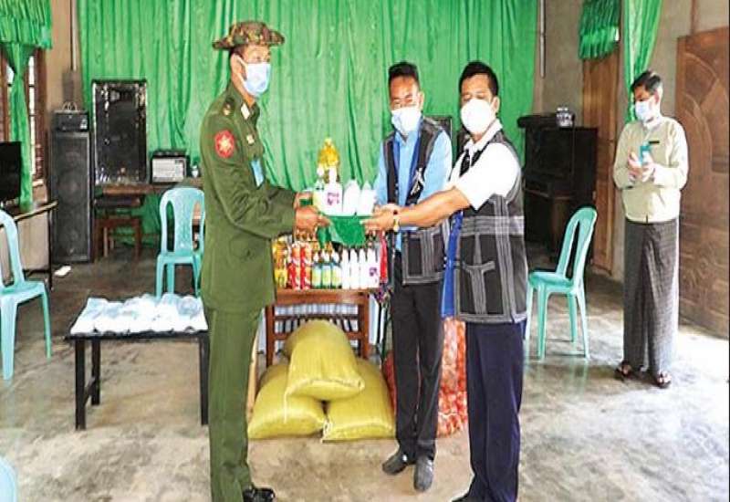 ကိုဗစ်- ၁၉ ရောဂါ ကာကွယ်၊ ထိန်းချုပ်၊ ကုသရေးလုပ်ငန်းများတွင် အသုံး ပြုရန်အတွက် တပ်မတော်သားများနှင့် စေတနာရှင်အလှူရှင်များက ကျန်းမာရေး အထောက်အကူပြုပစ္စည်းများနှင့် အလှူငွေများ ပေးအပ် လှူဒါန်းလျက်ရှိသည်။