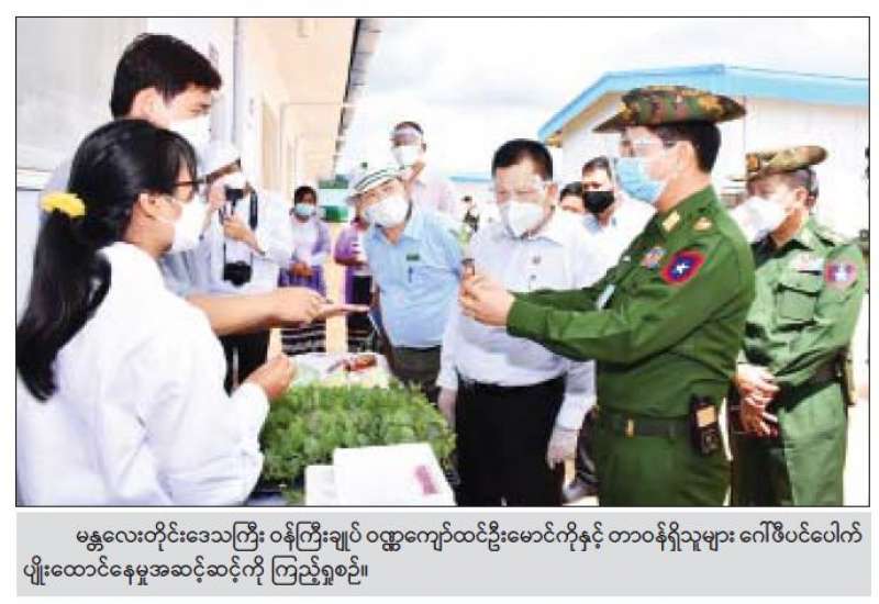 မန္တလေးတိုင်းဒေသကြီး ဝန်ကြီးချုပ် ဝဏ္ဏကျော်ထင် ဦးမောင်ကို၊ အလယ်ပိုင်းတိုင်းစစ်ဌာနချုပ် တိုင်းမှူး ဗိုလ်ချုပ်ကိုကိုဦးတို့သည် တိုင်းဒေသကြီးဝန်ကြီးများ နှင့်အတူ ပြင်ဦးလွင်မြို့နယ် သက္ကံချိုင်းကျေးရွာရှိ Haewoo Myanmar Co.,Ltd Dextrose Monohydrate ဂေါ်ဖီထုပ်၊ မုန်လာဥနီအခြောက်ခံ စက်ရုံသို့ ယနေ့ နံနက် ၁၀ နာရီခွဲက ရောက်ရှိလာရာ မန္တလေးတိုင်းဒေသကြီး စိုက်ပျိုးရေးဦးစီးဌာနမှ ညွှန်ကြားရေးမှူး ဦးတိုးမင်းနှင့် စက်ရုံမှတာဝန်ရှိသူများက ကြိုဆို နှုတ်ဆက်ကြသည်။