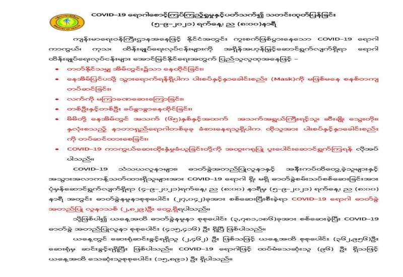 COVID-19 ရောဂါစောင့်ကြပ်ကြည့်ရှုမှုနှင့်ပတ်သက်၍သတင်းထုတ်ပြန်ခြင်း (၅-၉-၂၀၂၁) ရက်နေ့၊ ည (၈:၀၀)နာရီ