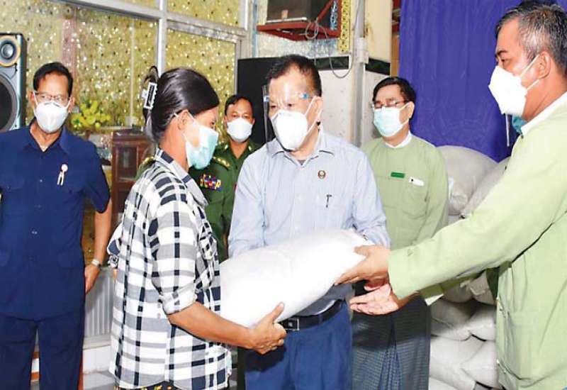 မန္တလေးတိုင်းဒေသကြီးဝန်ကြီးချုပ် ဦးမောင်ကိုနှင့် အလယ်ပိုင်းတိုင်းစစ်ဌာနချုပ် တိုင်းမှူး ဗိုလ်ချုပ်ကိုကိုဦးနှင့် တာဝန်ရှိသူများသည် မြို့နယ်များအတွင်းရှိ အခြေခံ အိမ်ထောင်စုဝင်များအတွက် အခြေခံစားသောက်ကုန် ဆန်များကို ယနေ့နံနက်ပိုင်းက အောင်မြေသာစံမြို့နယ်ရှိ ၁၂ လမ်းနှင့် ၇၇ လမ်းထောင့်၊ ဓမ္မနိဗဒ္ဓထားဝယ် ဓမ္မာရုံကြီးနှင့် ၈၆ လမ်း၊ ၁၃ လမ်းနှင့် ၁၄ လမ်းကြား၊ ကိုးခန်းဓမ္မာရုံ၌ ထောက်ပံ့ပေးအပ်သည်။