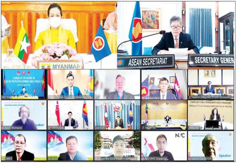 အာဆီယံလူငယ်ဆိုင်ရာ ဖွံ့ဖြိုးမှုအညွှန်းကိန်းများ အစီအစဉ် (၂) (ASEAN Youth Development Index Phase II) မိတ်ဆက်ဖြန့်ချိခြင်း အခမ်းအနားကို ယနေ့နံနက်ပိုင်းတွင် ဗီဒီယိုကွန်ဖရင့်စနစ်ဖြင့် ကျင်းပရာ လူမှုဝန်ထမ်း၊ ကယ်ဆယ်ရေးနှင့် ပြန်လည်နေရာချထားရေးဝန်ကြီးဌာန ပြည်ထောင်စု ဝန်ကြီး ဒေါက်တာသက်သက်ခိုင် တက်ရောက်သည်။