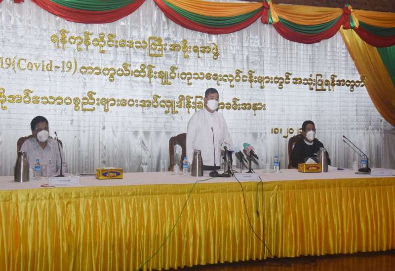 ရန်ကုန်တိုင်းဒေသကြီး အစိုးရအဖွဲ့ ကိုဗစ်-၁၉ ရောဂါ ထိန်းချုပ်ကုသရေးလုပ်ငန်း ဆောင်ရွက်မှု အခြေအနေများ နှင့်စပ်လျဉ်း၍ စာနယ်ဇင်းရှင်းလင်းပွဲကို ယနေ့မွန်းလွဲ ၁ နာရီတွင် ရန်ကုန်တိုင်းဒေသကြီး အစိုးရအဖွဲ့ရုံး၌ ကျင်းပသည်။