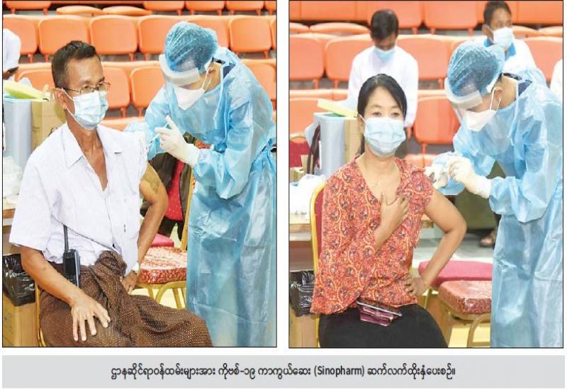 နေပြည်တော်ကောင်စီ နယ်မြေအတွင်းရှိ ဝန်ကြီးဌာနပေါင်းစုံမှ ဒုတိယအကြိမ် ကာကွယ်ဆေး ထိုးရန် ကျန်ရှိသည့် ပြည်ထောင်စုအဆင့် ဌာနဆိုင်ရာ ဝန်ထမ်းများနှင့် နေပြည်တော်အဆင့် ဌာနဆိုင်ရ | ဝန်ထမ်းများကို ယနေ့နံနက်ပိုင်းတွင် နေပြည်တော်ရှိ ဝဏ္ဏသိဒ္ဓိ အားကစားကွင်း (C) ရုံ၌ ကိုဗစ် - ၁၉ ကာကွယ်ဆေး (Sinopharm) ကို ဆက်လက်ထိုးနှံ ပေးလျက်ရှိသည်။