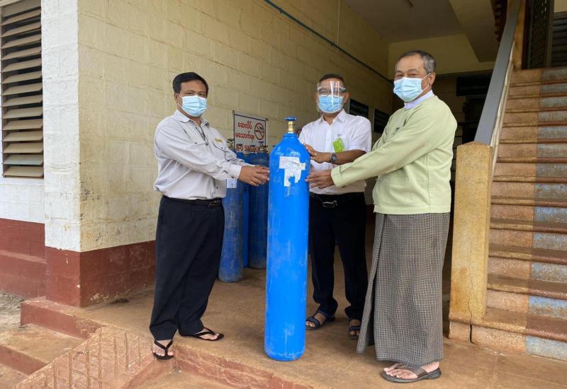 ကိုဗစ်-၁၉ရောဂါ ကာကွယ်၊ ထိန်းချုပ်၊ ကုသရေးလုပ်ငန်းများ ဆောင်ရွက်လျက် ရှိသော တပ်မတော်ဆေးရုံများ၊ ကိုဗစ်-၁၉ ရောဂါကုသရေးစင်တာများ၊ မြို့နယ် ပြည်သူ့ဆေးရုံများ၊ အရပ်ဘက် ပရဟိတ အဖွဲ့အစည်းများနှင့် အရေးပေါ်လူနာများအား လိုအပ်သောအောက်ဆီဂျင် ထောက်ပံ့ပေးနိုင်ရေး အတွက် တပ်မတော်(ရေ) ရေတပ်သင်္ဘောကျင်းဌာနချုပ်နှင့် ကွပ်ကဲမှုအောက် ဌာနချုပ်များတွင် အောက်ဆီဂျင် စက်ရုံများတည်ဆောက် တပ်ဆင်လျက်ရှိရာ