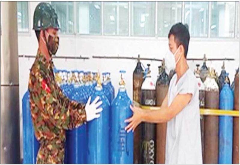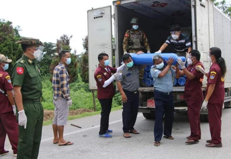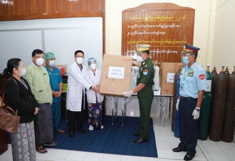 ကိုဗစ်-၁၉ရောဂါဓာတ်ခွဲအတည်ပြု ပိုးတွေ့ လူနာများ နှင့် သီးသန့်စောင့်ကြည့်ရမည့်သူများကို ကုသရေး လုပ်ငန်းများ ဆောင်ရွက်ရာတွင် အောက်ဆီဂျင် လိုအပ်ချက်များကို တစ်ဖက်တစ်လမ်းမှ အထောက် အကူပြုစေရန်အတွက် တပ်မတော်နှင့် အလှူရှင်များ က အောက်ဆီဂျင်အိုးများကို တိုင်းဒေသကြီးနှင့် ပြည်နယ်အသီးသီးရှိ ပြည်သူ့ဆေးရုံများ၊ တပ်မတော်ဆေးရုံများ၊ ကျန်းမာရေး ဌာနများနှင့် ကိုဗစ်စင်တာ များသို့ ပေးပို့လှူဒါန်းလျက်ရှိသည်။