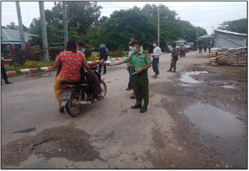 အသက်ရှူလမ်းကြောင်းဆိုင်ရာရောဂါ Coronavirus Disease 2019(COVID-19) ရောဂါကာကွယ်ရေး အထောက်အကူဖြစ်စေရန်အတွက် ယနေ့တွင် ဧရာဝတီတိုင်း ဒေသကြီး၊ ပုသိမ်ခရိုင်၊ ကန်ကြီးထောင့်မြို့၊ ငပုတောမြို့၊ ဟင်္သာတခရိုင်၊ မြန်အောင်မြို့၊ လေးမျက်နှာမြို့နှင့် မအူပင်ခရိုင်၊ ဓနုဖြူမြို့များရှိ လူစည်ကားရာ ဘုရားစေတီများ၊ ဈေးများ၊ လမ်းများ၌ ဒေသခံပြည်သူများအား အနောက်တောင်တိုင်းစစ်ဌာနချုပ်၊ တပ်နယ်အသီးသီးမှ နယ်မြေခံတပ်မတော်သားများက ဌာနဆိုင်ရာဝန်ထမ်းများနှင့် အတူ Mask ၁၅၀၀၀ ခုကို ဒေသခံပြည်သူများ၏ လက်ဝယ်အရောက် အခမဲ့ ပေးဝေလှူဒါန်းခဲ့ကြကြောင်း သတင်းရရှိသည်။