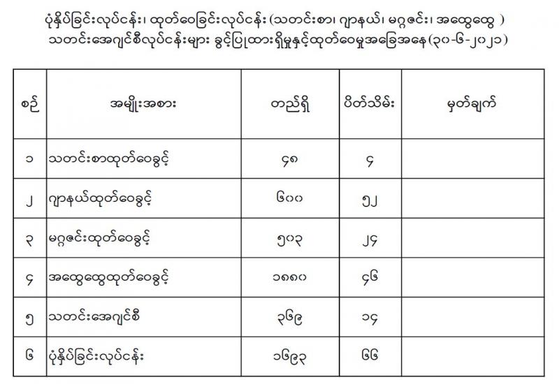 တိရစ္ဆာန်အစာ စိုက်ပျိုးကျွေးမွေးခြင်းနှင့် တိရစ္ဆာန်အစာချဉ်ဖတ်ထုတ်လုပ်ခြင်း လုပ်ငန်းညှိနှိုင်း အစည်းအဝေးကို ယနေ့ နံနက်ပိုင်းက စိုက်ပျိုးရေး၊ မွေးမြူရေးနှင့် ဆည်မြောင်းဝန်ကြီးဌာန ပြည်ထောင်စုဝန်ကြီးရုံး အစည်းအဝေးခန်းမ၌ ကျင်းပသည်။