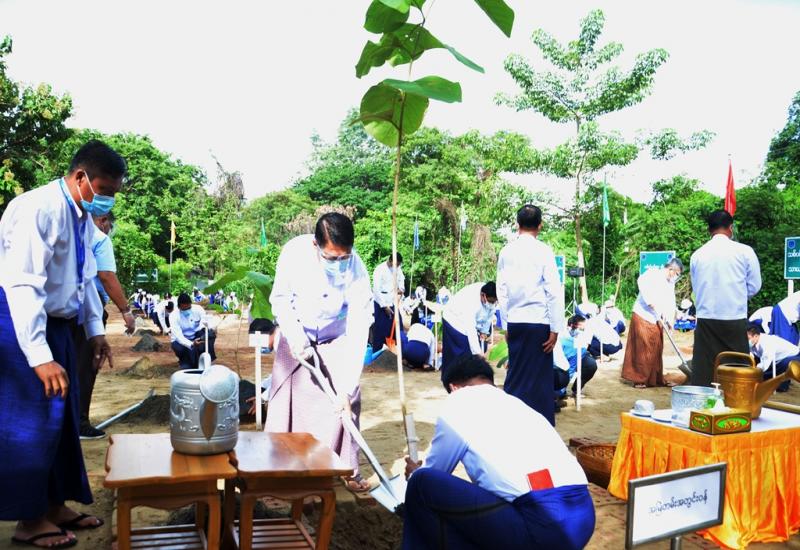 လူမှုဝန်ထမ်း၊ ကယ်ဆယ်ရေးနှင့် ပြန်လည်နေရာချထားရေးဝန်ကြီးဌာန၏ ၂၀၂၁ ခုနှစ် မိုးရာသီ သစ်ပင်စိုက်ပျိုးပွဲနှင့် ငါးမျိုးစိုက်ထည့်ပွဲကို ယနေ့နံနက်ပိုင်းတွင် အဆိုပါဝန်ကြီးဌာနဝင်း အတွင်း၌ ကျန်းမာရေးနှင့် အားကစားဝန်ကြီးဌာနမှ ထုတ်ပြန်ထားသည့် ကိုဗစ်-၁၉ ရောဂါ ကာကွယ်၊ ထိန်းချုပ်ရေးဆိုင်ရာ ညွှန်ကြားချက်များနှင့်အညီ ကျင်းပသည်။