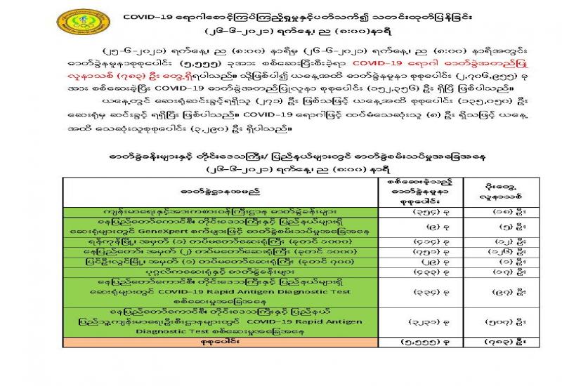 ပြည်ထောင်စုရာထူးဝန်အဖွဲ့၏ ကြော်ငြာစာအမှတ်(၃/၂၀၂၀)ပါ ဝန်ကြီးဌာနနှင့် အဖွဲ့ အစည်း (၁၀) ခုမှ ပြန်တမ်းဝင်အရာရှိအဆင့် စတင်ခန့်လစ်လပ်ရာထူး (၁၉၅)နေရာ ရွေးချယ် ပေးရေးအတွက် ရေးဖြေစာမေးပွဲကို ကိုဗစ်-၁၉ ကာကွယ်ထိန်းချုပ်ရေးဆိုင်ရာ စည်းကမ်းသတ် မှတ်ချက်နှင့်အညီ ဇွန် ၂၆ ရက်နှင့် ၂၇ ရက်တွင် နေပြည်တော်၊ ရန်ကုန်၊ မန္တလေး၊ မကွေးနှင့် မော်လမြိုင်မြို့တို့ရှိ စာစစ်ဌာန(၅)ခု၌ တစ်ပြိုင်တည်း ကျင်းပလျက်ရှိသည်။