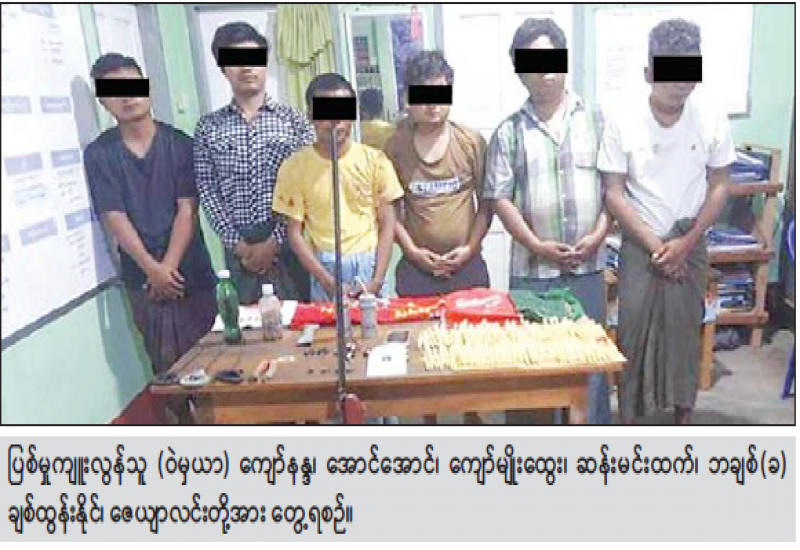 စစ်ကိုင်းတိုင်းဒေသကြီး၊ မုံရွာမြို့နယ်ရှိ အခြေခံပညာအထက်တန်းကျောင်း မီးလောင်မှုအား စစ်ဆေးရန် လာရောက်သည့် လုံခြုံရေးတပ်ဖွဲ့ဝင်များအား တိုက်ခိုက်ရန်ပြင်ဆင်နေသည့် အကြမ်းဖက်သူ အမျိုးသား ၆ ဦးအား တူမီးသေနတ်၊ ဆက်စပ်ပစ္စည်းများနှင့်အတူ ဖမ်းဆီးရမိခဲ့ကြောင်း သိရသည်။