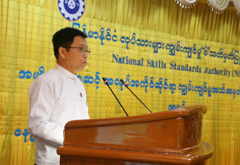 မြန်မာနိုင်ငံလုပ်သားများ ကျွမ်းကျင်မှု “စံ” သတ်မှတ်ပြဋ္ဌာန်းရေးအဖွဲ့ (National Skills Standard Authority-NSSA) ၏ အမျိုးသားအဆင့် အလုပ်အကိုင်ဆိုင်ရာကျွမ်းကျင်မှု အသိ အမှတ်ပြု လက်မှတ်ပေးအပ်ပွဲကို ယနေ့နံနက် ၁၀ နာရီက နေပြည်တော်ရှိ အလုပ်သမား၊ လူဝင်မှုကြီးကြပ်ရေး နှင့် ပြည်သူ့အင်အားဝန်ကြီးဌာန အစည်းအဝေးခန်းမ၌ ကျင်းပသည်။