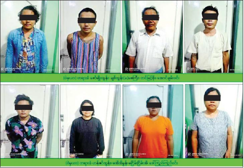 စစ်ကိုင်းတိုင်းဒေသကြီး၊ မုံရွာမြို့၌ အမျိုးသား ၅ ဦးနှင့် အမျိုးသမီး ၃ ဦးတို့အား လက်နက်ကိုင် အကြမ်းဖက် PDF အဖွဲ့သို့ ထောက်ပံ့မည့် ပစ္စည်းများနှင့်အတူ ဖမ်းဆီးရမိခဲ့ကြောင်း သိရသည်။