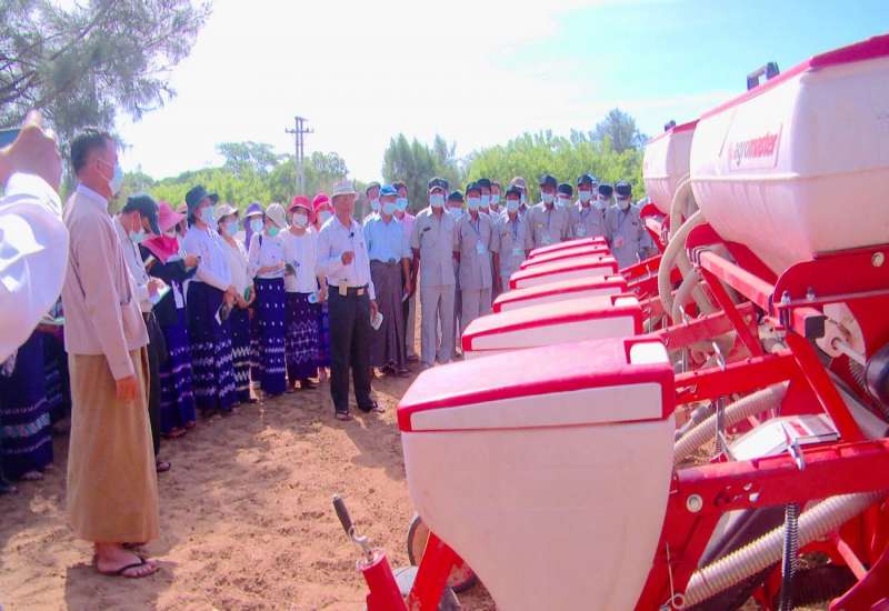 ဝါစိုက်ပျိုးရန် မြေပြုပြင်ခြင်း၊ မျိုးစေ့ချခြင်း၊ ဆေးဖြန်းခြင်းလုပ်ငန်းများတွင် နည်းပညာသစ် စက်ကိရိယာများ အသုံးပြုဆောင်ရွက်မှုအား စိုက်ပျိုးရေးဦးစီးဌာနနှင့် စက်မှုလယ်ယာဦးစီးဌာနတို့ ပူးပေါင်းဆောင်ရွက်မှု ကွင်းသရုပ်ပြပွဲကို မေ(၂၄)ရက်က မန္တလေးတိုင်းဒေသကြီး၊ ဝမ်းတွင်းမြို့နယ်၊ ဝါသုတေသနနှင့် နည်းပညာဖွံ့ဖြိုးရေးခြံ (ရွှေတောင်ခြံ)၌ ကျင်းပရာ မိတ္ထီလာ စက်မှုလယ်ယာ ဗဟိုသင်တန်းကျောင်းမှ နည်းပညာသစ် လယ်ယာသုံးစက်ကိရိယာများ ကိုင်တွယ်ထိန်းသိမ်းမှု သင်တန်း တက်ရောက်လျက်ရှိသည့် သင်တန်းသားများ၊ မိတ္ထီလာ၊ ကျောက်ဆည်၊ ပြင်ဦးလွင် မြို့နယ်များမှ လယ်ယာဝန်ဆောင်မှုအသင်းဝင်တောင်သူများ တက်ရောက် လေ့လာခဲ့ကြသည်။