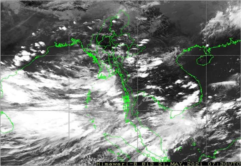 ယနေ့နံနက်(၀၉:၃၀)နာရီအချိန်ထိမိုးလေဝသတိုင်းထွာချက်အကျဉ်းချုပ်။လွန်ခဲ့သော(၂၄)နာရီအတွင်းက ရန်ကုန်တိုင်းဒေသကြီး၊ တနင်္သာရီတိုင်းဒေသကြီးနှင့် မွန်ပြည်နယ်တို့တွင် နေရာအနှံ့အပြား၊ ရှမ်းပြည်နယ်(မြောက်ပိုင်း)တွင် နေရာစိပ်စိပ်၊ ပဲခူးတိုင်းဒေသကြီး၊ ဧရာဝတီတိုင်းဒေသကြီး၊ ကချင်ပြည်နယ်၊ ရှမ်းပြည်နယ်(တောင်ပိုင်းနှင့် အရှေ့ပိုင်း)နှင့် ကရင်ပြည်နယ်တို့တွင် နေရာကျဲကျဲနှင့် စစ်ကိုင်းတိုင်းဒေသကြီး၊ မန္တလေးတိုင်းဒေသကြီးနှင့် ရခိုင်ပြည်နယ်တို့တွင် နေရာကွက်ကျားမိုးထစ်ချုန်းရွာခဲ့ပြီး၊ ရှမ်းပြည်နယ်(အရှေ့ပိုင်း)တွင် နေရာကွက်၍ မိုးကြီးခဲ့ကာ၊ ကျန်တိုင်းဒေသကြီးနှင့် ပြည်နယ်တို့တွင် တိမ်အသင့်အတင့် ဖြစ်ထွန်းခဲ့ပါသည်။