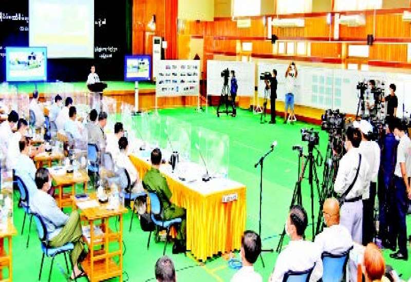 နိုင်ငံတော်စီမံအုပ်ချုပ်ရေးကောင်စီ သတင်းထုတ်ပြန် ရေးအဖွဲ့၏ (၅/၂၀၂၁)ကြိမ်မြောက် သတင်းစာရှင်းလင်း ပွဲကို ယနေ့မွန်းလွဲပိုင်းတွင် ပြန်ကြားရေးဝန်ကြီး ဌာန၌ ကျင်းပပြုလုပ်ပြီး နိုင်ငံတော်စီမံအုပ်ချုပ်ရေး ကောင်စီ သတင်း ထုတ်ပြန်ရေးအဖွဲ့ ခေါင်းဆောင် ဗိုလ်ချုပ်ဇော်မင်းထွန်း၊ ပြည်ထောင်စုရွေးကောက် ပွဲကော်မရှင်အဖွဲ့ဝင် ဦးခင်မောင်ဦး၊ မြန်မာနိုင်ငံတော် ဗဟိုဘဏ် ဒုတိယဥက္ကဋ္ဌ ဦးဝင်းသော်နှင့် ဌာနဆိုင်ရာ သတင်းထုတ်ပြန်ရေးအဖွဲ့ ကိုယ်စား လှယ်များက သတင်းမီဒီယာများ၏ သိရှိလိုသည့်မေးမြန်းမှုများကို ပြန်လည်ဖြေကြားသည်။