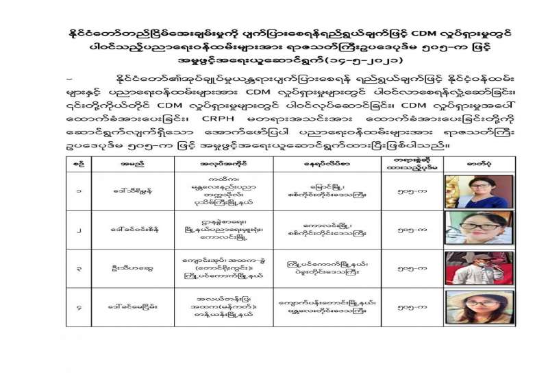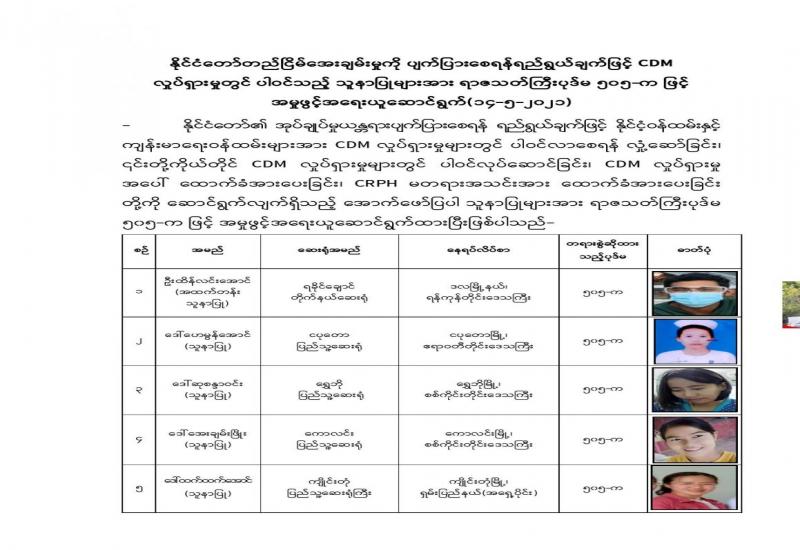 ကရင်ပြည်နယ်၊ သံတောင်ကြီးမြို့နယ်၌ အုပ်ချုပ်ရေးယန္တရားနှင့် တရားဥပဒေစိုးမိုးမှု ထိခိုက် ပျက်ပြားစေရန်နှင့် ပြည်သူလူထုများကြားတွင် အကြောက်တရားများ လွှမ်းမိုးစေရန်ရည်ရွယ်ကာ အကြမ်းဖက်အုပ်စုများမှ ကျေးရွာစီမံအုပ်ချုပ်ရေး အဖွဲ့မှူးနှင့် ရပ်/ကျေးစာရေးတို့ ၂ ဦးအား ရည်ရွယ် ချက်ရှိရှိ လုပ်ကြံသတ်ဖြတ်ခဲ့ကြောင်း သိရသည်။
