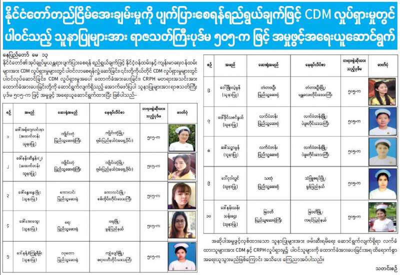 မန္တလေးတိုင်းဒေသကြီး မြင်းခြံမြို့နယ် တလုပ်မြို့ကျေးရွာ၌ ဆူပူအကြမ်းဖက် ဆန္ဒပြသူများ အား ဖြိုခွဲထိန်းသိမ်းစဉ် လုံခြုံရေးတပ်ဖွဲ့ဝင် ခြောက်ဦး ထိခိုက်ဒဏ်ရာရရှိကာ ဆူပူအကြမ်းဖက် သူအမျိုးသား ငါးဦးနှင့် အမျိုးသမီး တစ်ဦးတို့ကို ဆူပူအကြမ်းဖက် ရာတွင် အသုံးပြုသည့် လက်နက်/ ခဲယမ်း၊ ဆက်စပ်ပစ္စည်းများနှင့်အတူ ဖမ်းဆီးရမိခဲ့ပြီး ထိရောက်စွာ အရေးယူနိုင်ရေး ဆောင်ရွက် လျက်ရှိသည်။