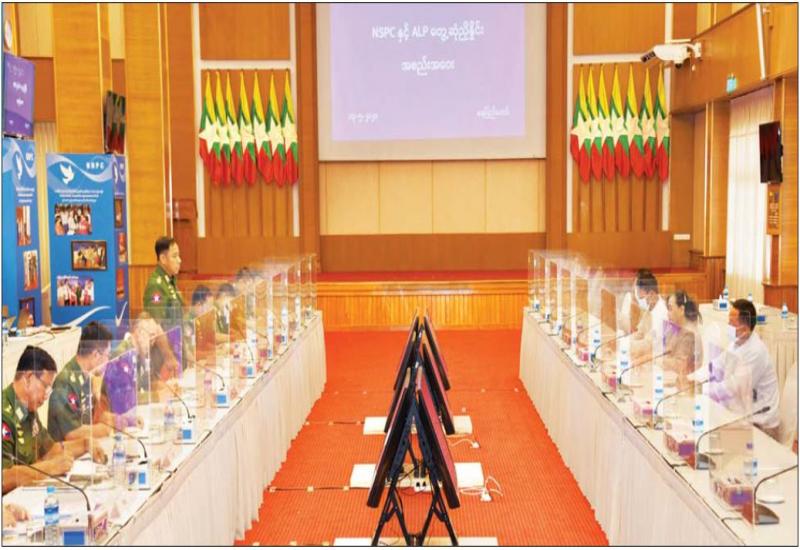 အမျိုးသားစည်းလုံးညီညွတ်ရေးနှင့် ငြိမ်းချမ်းရေးဖော်ဆောင်မှု ညှိနှိုင်းရေးကော်မတီ (NSPNC) နှင့် ရခိုင်ပြည်လွတ်မြောက်ရေးပါတီ(ALP)တို့ တွေ့ဆုံညှိနှိုင်း အစည်းအဝေးကို ယနေ့နံနက် ၁၀ နာရီတွင် နေပြည်တော်ရှိ အမျိုးသားစည်းလုံးညီညွတ်ရေးနှင့် ငြိမ်းချမ်းရေးဖော်ဆောင်မှု ဗဟိုဌာန အစည်းအဝေးခန်းမ၌ ကျင်းပသည်။