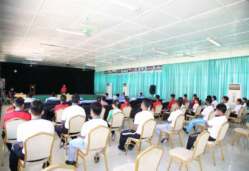 (၃၁)ကြိမ်မြောက် အရှေ့တောင်အာရှအားကစားပြိုင်ပွဲတွင် မြန်မာအားကစားအဖွဲ့ ပါဝင် ယှဉ်ပြိုင်ပြီး အောင်မြင်မှု ရရှိစေရန် ရည်ရွယ်၍ ကြိုတင်ပြင်ဆင် လေ့ကျင့်လျက်ရှိရာ နေပြည်တော်အားကစားလေ့ကျင့်ရေးစခန်းရှိ မြန်မာ အား ကစား အဖွဲ့များအား ယနေ့ နံနက် (၈)နာရီတွင် ကျန်းမာရေးနှင့် အားကစားဝန်ကြီးဌာန ဒုတိယဝန်ကြီး ဦးမျိုးလှိုင် လိုက်လံကြည့်ရှုအားပေးစကား ပြောကြားသည်။
