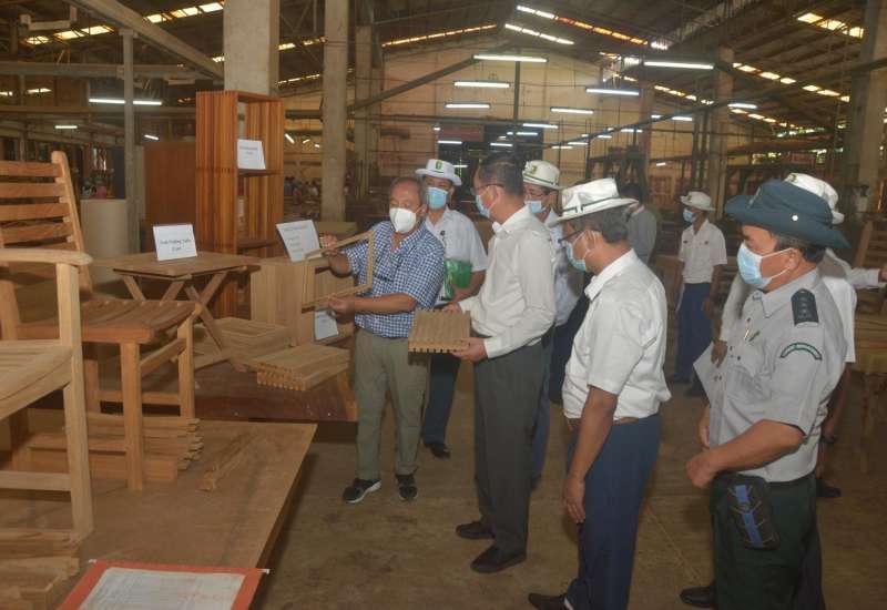 သယံဇာတနှင့် သဘာဝပတ်ဝန်းကျင်ထိန်းသိမ်းရေးဝန်ကြီးဌာန၊ ပြည်ထောင်စု ဝန်ကြီး ဦးခင်မောင်ရီသည် တာဝန်ရှိ သူများနှင့်အတူ ယနေ့တွင် ရန်ကုန်တိုင်းဒေသကြီး၊ တောင်ဒဂုံမြို့နယ်ရှိ မြန်မာ့သစ်လုပ်ငန်း၊ သစ်အခြေခံ စက်မှု လုပ်ငန်းဌာန၊ အမှတ်(၁၀) ပရိဘောဂစက်ရုံအား ကြည့်ရှုစစ်ဆေးရာ သစ်အခြေခံစက်မှုလုပ်ငန်းဌာန စက်ရုံအထွေထွေ မန်နေဂျာက စက်ရုံနောက်ခံသမိုင်းများနှင့် စက်ရုံ၌ Prowess Myanmar Co., Ltd နှင့်ပူးပေါင်း၍ ပရိဘောဂများ ထုတ်လုပ်တင်ပို့မည့်အစီအစဉ်များကို ရှင်းလင်းတင်ပြသည်။