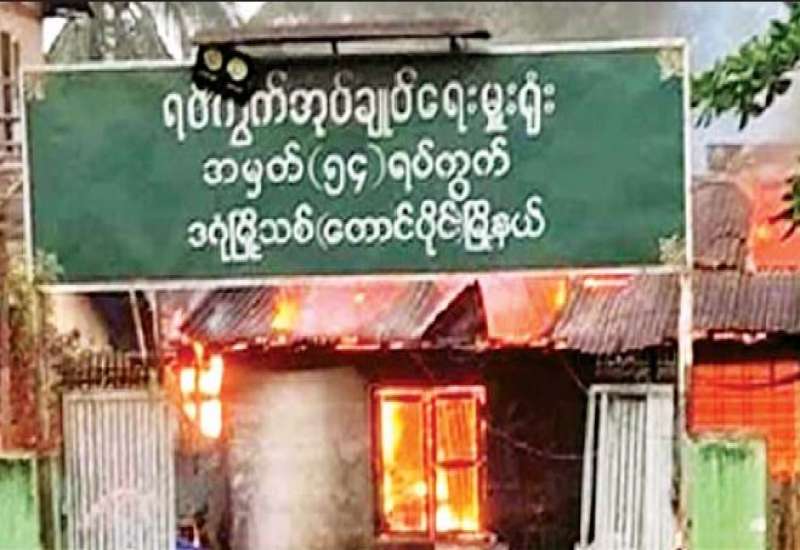 မြို့နယ်အချို့၌ ဆူပူအကြမ်းဖက်သူများအနေဖြင့် မြို့နယ်အချို့၌ ဆူပူအကြမ်းဖက်သူများမှ နိုင်ငံတော်ပိုင် အဆောက်အဦများ၊ အများပြည်သူပိုင် အဆောက်အဦ များအား မီးရှို့ဖျက်ဆီးမှုများ ဆောင်ရွက်လျက်ရှိသည်။