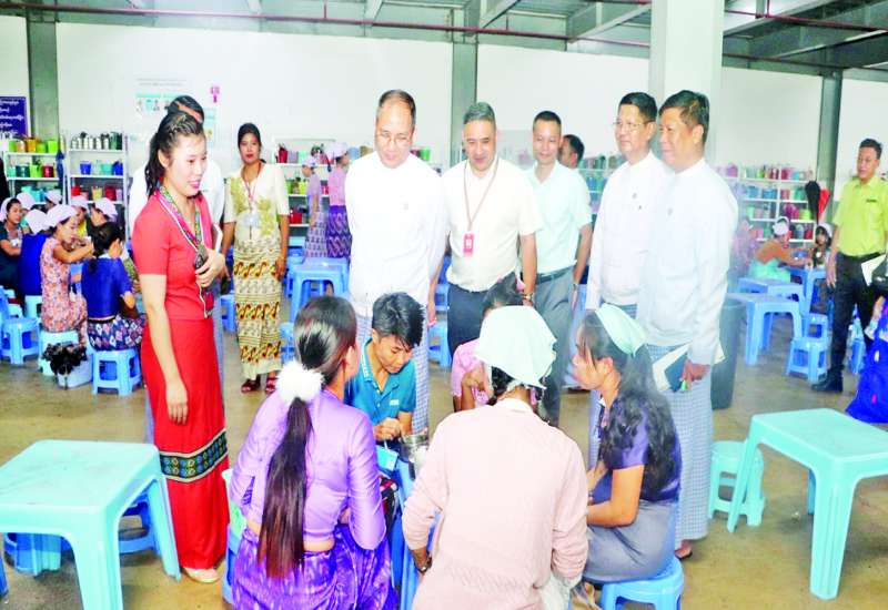 အလုပ်သမားဝန်ကြီးဌာန ပြည်ထောင်စုဝန်ကြီး ဦးအောင်ကျော်ဟိုးသည် တာဝန်ရှိသူများနှင့်အတူ ယနေ့နံနက်ပိုင်းတွင် ရန်ကုန်တိုင်းဒေသကြီး လှိုင်သာယာ(အနောက်ပိုင်း)မြို့နယ် မြစိမ်းရောင်စက်မှုဇုန်ရှိ Myanmar Rui Xin Shoes Co.,Ltd. ဖိနပ်ချုပ်စက်ရုံနှင့် Sincerece Season(Myanmar) Garment Co., Ltd. အထည်ချုပ်စက်ရုံတို့မှ အလုပ်ရှင်၊ အခြေခံအလုပ်သမားအဖွဲ့အစည်းဝင်များနှင့် တွေ့ဆုံသည်။