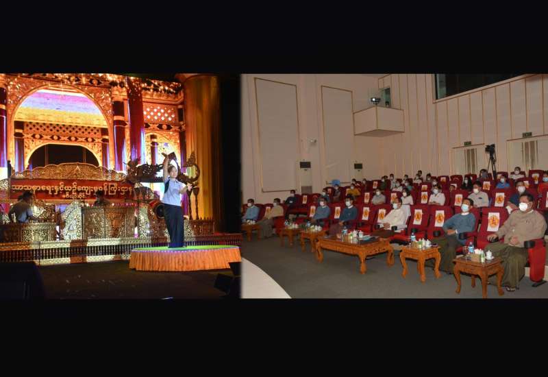 သာသနာရေးနှင့်ယဉ်ကျေးမှုဝန်ကြီးဌာန ပြည်ထောင်စုဝန်ကြီး ဦးကိုကိုသည် ရုံးအမှတ်(၃၅)ရှိ လေ့ကျင့်ရေး ဇာတ်ရုံတွင် အနုပညာရှင်ဝန်ထမ်းများ လေ့ကျင့်ဇာတ်တိုက် နေမှုနှင့် အနုပညာဦးစီးဌာန၏ ၂၀၂၀-၂၀၂၁ ဘဏ္ဍာ ရေးနှစ်၊ ငွေလုံးငွေရင်းအသုံး စရိတ်ဖြင့် သိုလှောင်ရုံတည်ဆောက်နေမှုကို ကြည့်ရှုစစ်ဆေးသည်။