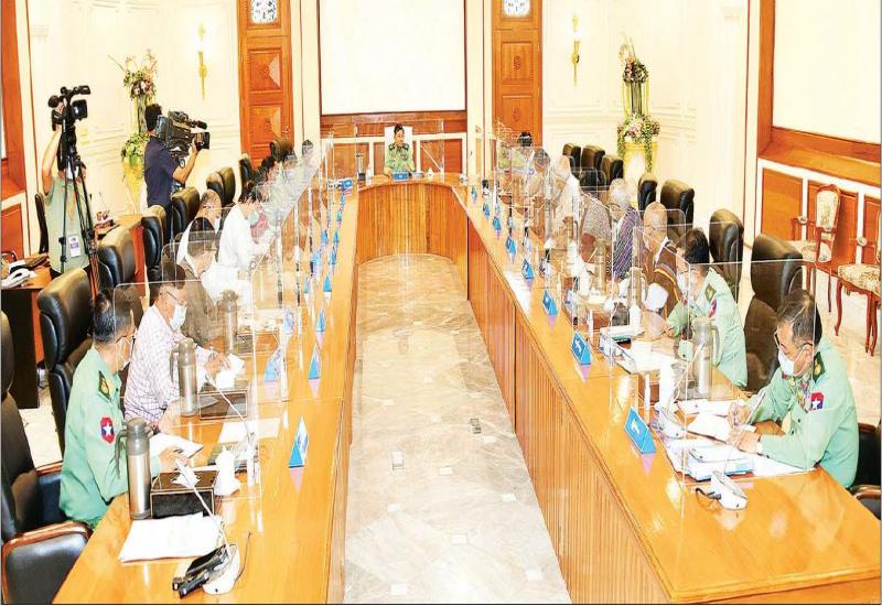 နိုင်ငံတော်စီမံအုပ်ချုပ်ရေးကောင်စီ အစည်းအဝေး (၇/၂၀၂၁)ကို ယနေ့နံနက်ပိုင်းတွင် နေပြည်တော်ရှိ နိုင်ငံတော်စီမံအုပ်ချုပ်ရေးကောင်စီဥက္ကဋ္ဌရုံး အစည်းအဝေးခန်းမ၌ ကျင်းပရာ နိုင်ငံတော်စီမံအုပ်ချုပ်ရေးကောင်စီဥက္ကဋ္ဌ၊ တပ်မတော်ကာကွယ်ရေးဦးစီးချုပ် ဗိုလ်ချုပ်မှူးကြီး မင်းအောင်လှိုင် တက်ရောက်အမှာစကား ပြောကြားသည်။