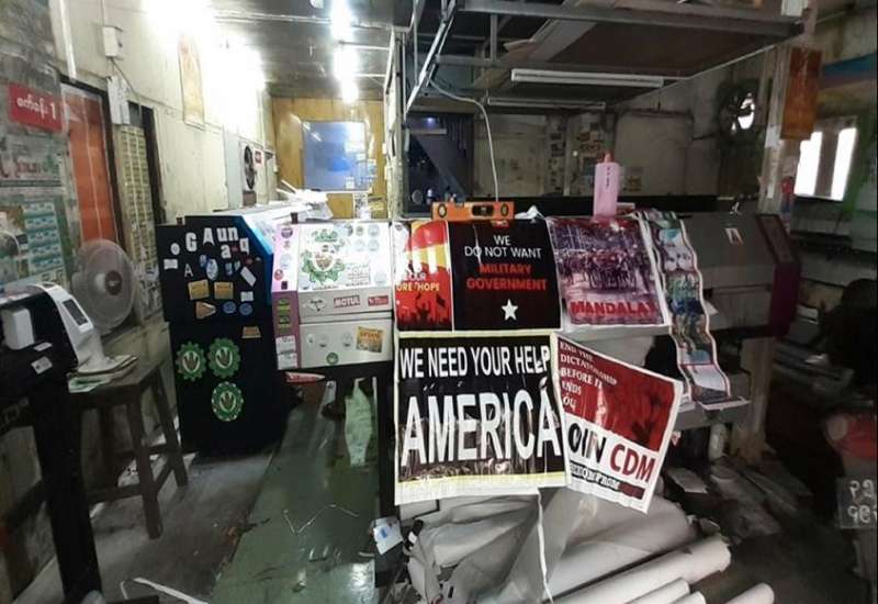 မန္တလေးတိုင်းဒေသကြီး၊ မဟာအောင်မြေမြို့နယ်၌ ဆူပူဆန္ဒပြရာတွင် ကိုင်ဆောင်အသုံးပြုရန် ဗီနိုင်းဆိုင်းဘုတ်ပြုလုပ်ပေးသည့် ကြော်ငြာလုပ်ငန်းဆိုင်အား ဖမ်းဆီးခဲ့ကြောင်း မြန်မာနိုင်ငံရဲတပ်ဖွဲ့၏ သတင်းထုတ်ပြန်ချက်အရ သိရသည်။