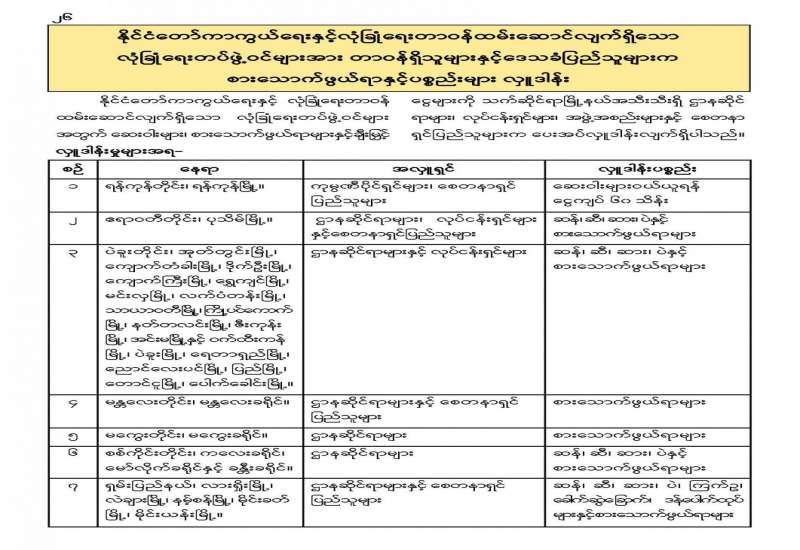 ရန်ကုန်တိုင်းဒေသကြီး၊ လသာမြို့နယ်၌ အများပြည်သူသုံးလမ်းမကြီးပေါ်တွင် ကားဟွန်းသံရှည်တီးကာ လက်သုံးချောင်းထောင်၍ ဆူပူဆန္ဒပြသူကို ဖမ်းဆီးအရေးယူ ခဲ့ကြောင်း မြန်မာနိုင်ငံရဲတပ်ဖွဲ့၏ သတင်းထုတ်ပြန်ချက်အရ သိရသည်။