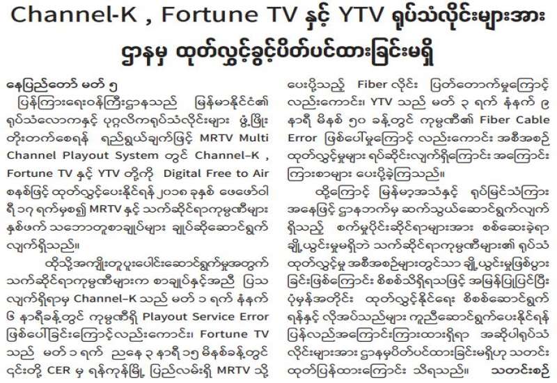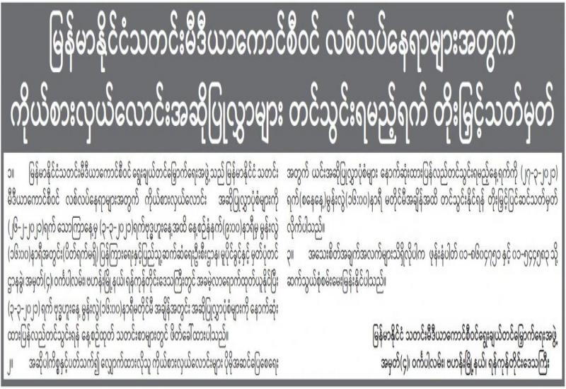 (၂၀၂၁ ခုနှစ်၊ မတ်လ (၆)ရက်နေ့ ည(၇:၀၀)နာရီအချိန် ထုတ်ပြန်ချက်)