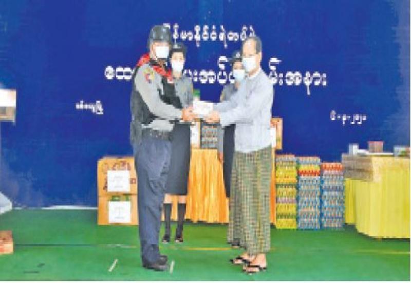 ရခိုင်ပြည်နယ် စီမံအုပ်ချုပ်ရေးကောင်စီဥက္ကဋ္ဌ ဒေါက်တာအောင်ကျော်မင်းနှင့် အနောက်ပိုင်း တိုင်းစစ်ဌာနချုပ်တိုင်းမှူး ဗိုလ်ချုပ်ထင်လတ်ဦး တို့မှ ရခိုင်ဒေသတွင် ရှေ့တန်းတာဝန်ထမ်းဆောင်ခဲ့သော အမှတ်(၇)လုံခြုံရေးရဲတပ်ဖွဲ့ခွဲမှ တပ်ဖွဲ့ဝင်များအား ရိက္ခာပစ္စည်းများထောက်ပံ့ ပေးအပ်ပွဲကို ယနေ့တွင် စစ်တွေမြို့အမှတ်(၃၆) ရဲတပ်ရင်း အစည်းအဝေးခန်းမ၌ ကျင်းပသည်။