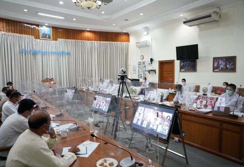ဆေးပညာနှီးနွှယ် တက္ကသိုလ် (၇) ခု၏ နောက်ဆုံးနှစ် (၁/၂၀၂၀) (ပုံမှန်) သင်တန်းများ ပြန်လည်ဖွင့်လှစ်နိုင်ရေးနှင့် သင်ကြားရေးစနစ် ပိုမိုကောင်းမွန်စေရေး ညှိနှိုင်းအစည်းအဝေးကို ယနေ့နံနက်ပိုင်းတွင် ကျန်းမာရေးလူ့စွမ်းအားအရင်းအမြစ်ဦးစီးဌာန၌ ဗီဒီယိုကွန်ဖရင့်စနစ်ဖြင့် ကျင်းပသည်။