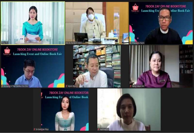 စာပေထုတ်ဝေဖြန့်ချိရေးကဏ္ဍအား ဒီဂျစ်တယ်စီးပွားရေး လုပ်ငန်းသစ်တစ်ခုအဖြစ် ပိုမိုတိုးတက်အောင်မြင်စေရေးနှင့် ပံ့ပိုးကူညီပေးနိုင်ရေး အတွက် 7 Book Zay Online Bookstore (7BookZay.com) မိတ်ဆက်ပွဲ အခမ်းအနားကို ယနေ့နံနက်(၁၀)နာရီက Virtual စနစ်ဖြင့် ကျင်းပရာ ပြန်ကြားရေးဝန်ကြီးဌာန၊ ပြည်ထောင်စုဝန်ကြီး ဒေါက်တာဖေမြင့် တက်ရောက်ခဲ့သည်။